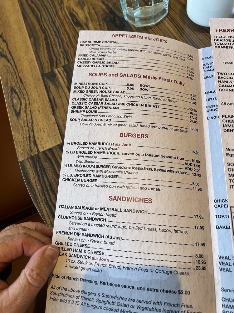 Half Moon Bay Joe’s is a charming Italian, seafood, and American restaurant located in Half Moon Bay, CA. With amenities like outdoor seating, free Wi-Fi, and a welcoming atmosphere, this eatery offers a delightful dining experience. Their menu includes a variety of breakfast options such as eggs cooked in different styles and outrageously delicious omelettes. Customer reviews rave about the attentive staff, delicious food, and the comfort of the dining environment. Dishes like the NY steak & eggs are cooked perfectly, leaving patrons satisfied and eager to return. Whether you're in the mood for a classic American burger or flavorful Italian pasta, Half Moon Bay Joe's has something for everyone. Don't forget to save room for dessert, as their sweet treats are a must-try. Overall, this restaurant is a must-visit for those looking for a delicious meal in a cozy setting.